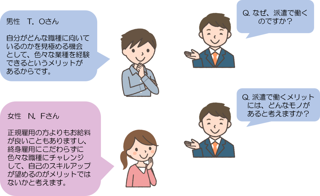 経験と知識が豊富なスタッフが、就労開始から就業中の日々のフォローまでしっかりと責任を持ち、親身になって対応しますので、「派遣就労の経験が無いから不安…」、「社会人経験が浅くて不安…」といった方でも安心して働いていただけます。